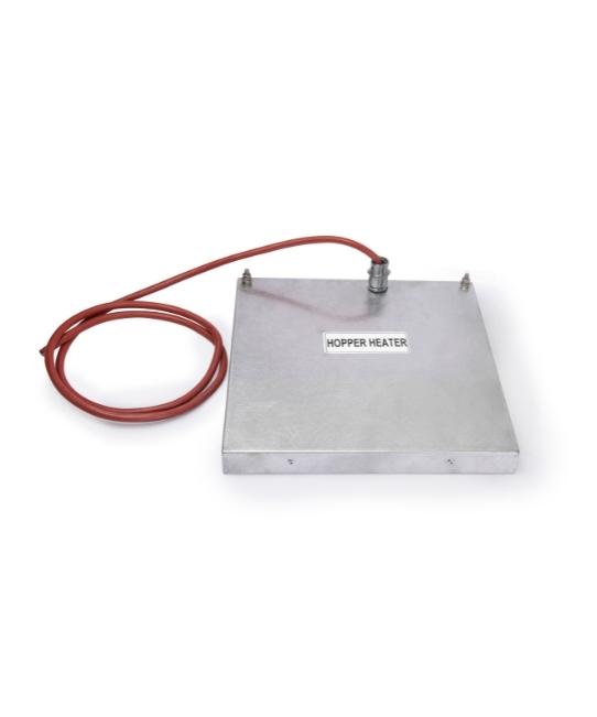 Thermo Hopper Heater comprise of Flat heating Strips / Wire type elements, uniformly distributed and sandwiched between multiple layers of fiber glass cloth. This complete assembly is housed in tamper proof rugged high temperature resistant Aluminum Body. The Heating element is connected to power supply through Fibre Glass insulated and Silicon Rubber sheathed Cable.
